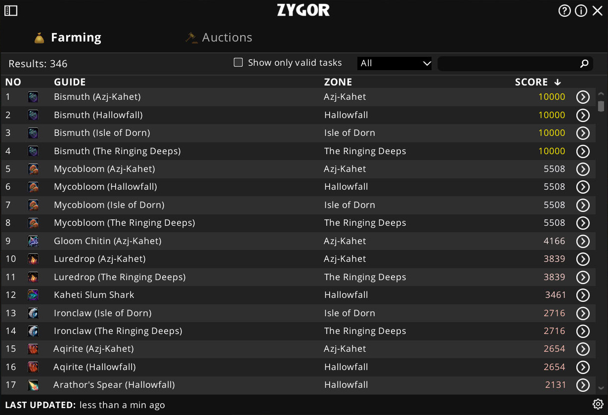 Zygor's Gold and Auctions Guides provides a number of tools to help you with selling your farmed items.